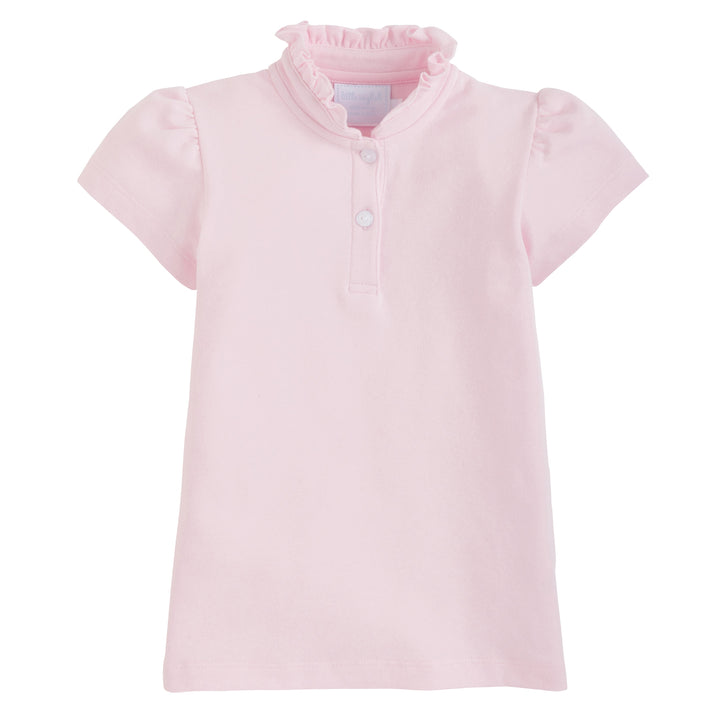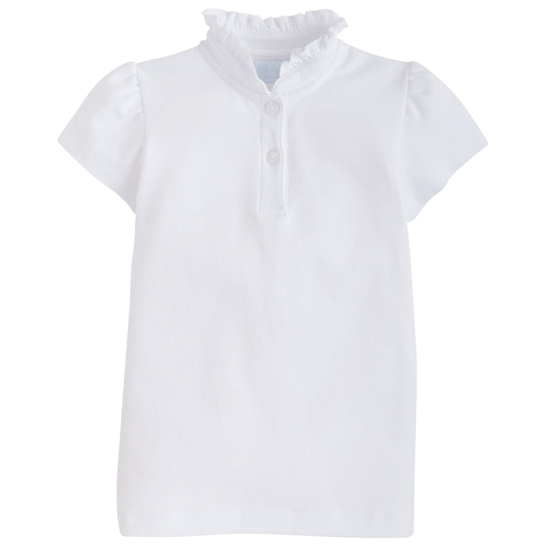 The Hastings Polo in White will be a much loved staple in your daughter's closet - for school and play! This polo shirt features a ruffled neckline and puffed sleeves with a two button closure down the front. It's classic yet modern and oh-so-sweet!