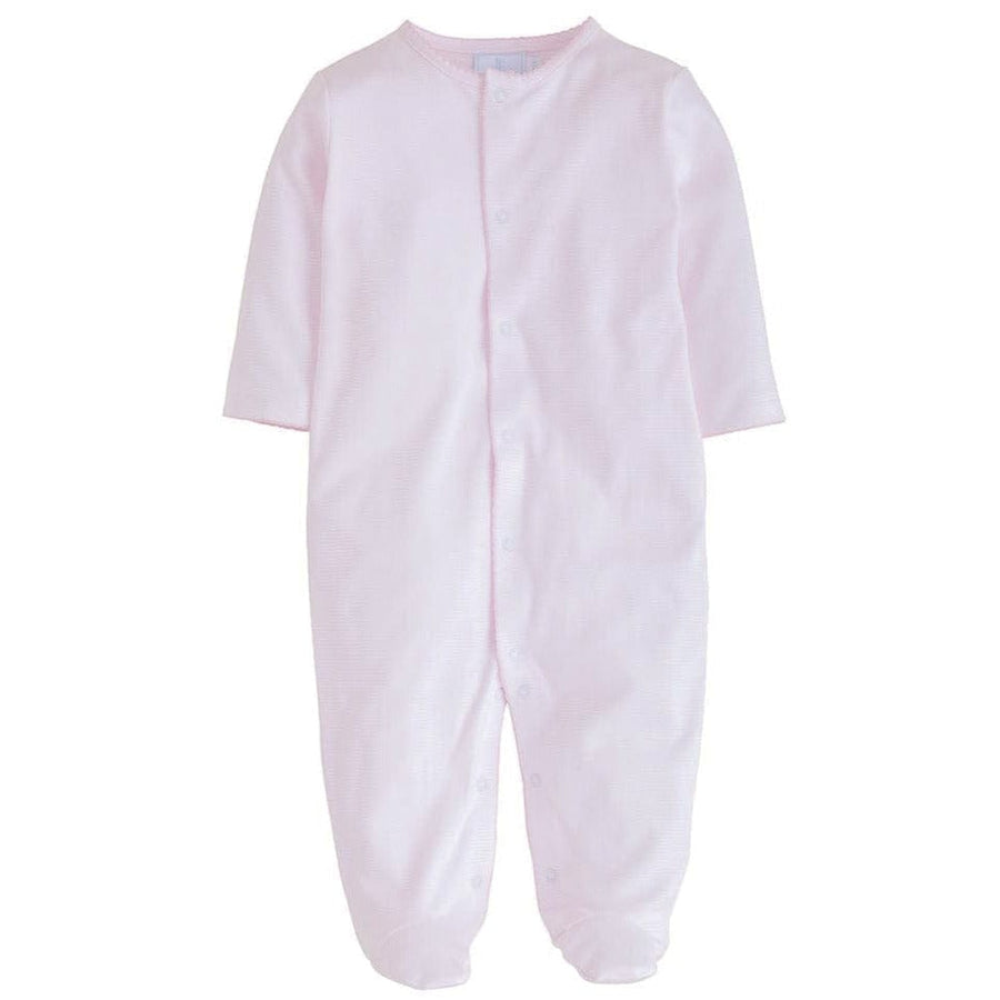This 100% pima footie features our soft, light pink and white signature stripes with snaps down the front that coordinate back to our Signature Stripe Blanket and Multi-Pack Bibs. These make the perfect gift for new moms to be!