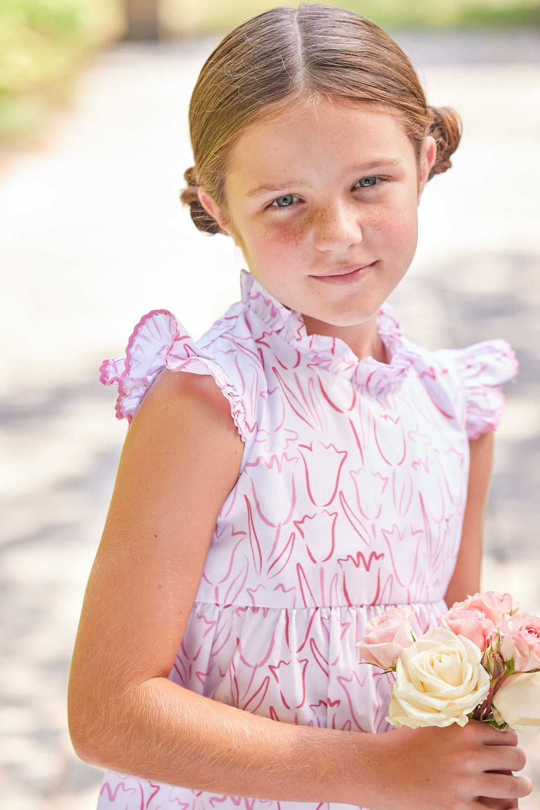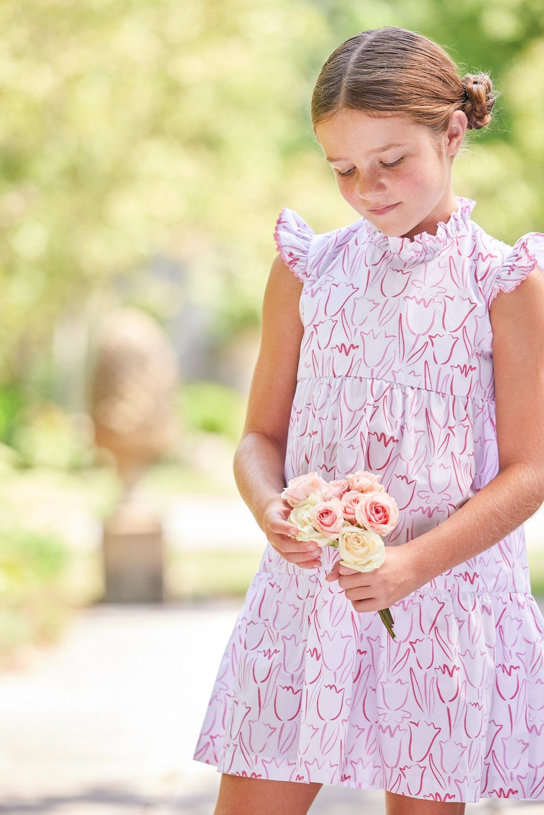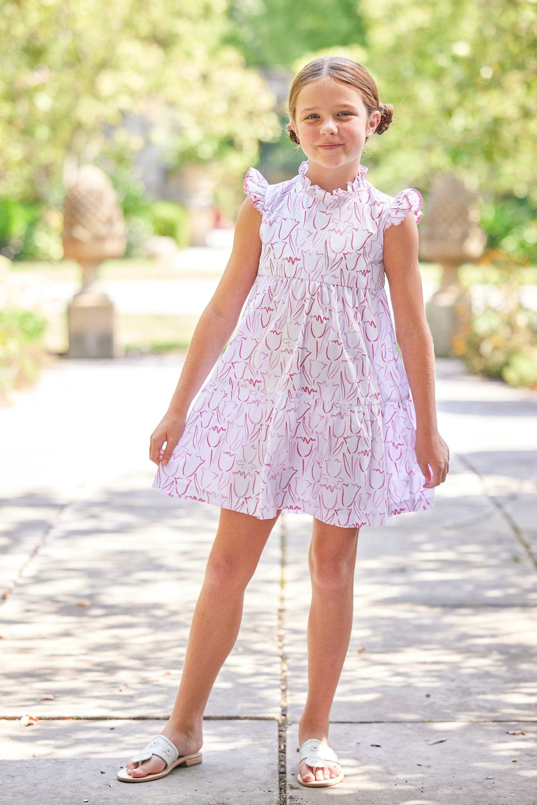 Spring into the new season with the sweetest pink tulips! A Little English favorite, the Tiered Charleston Dress features a sleeveless, tiered silhouette with a ruffled neck and angel sleeves. The Albany Floral is simple and beautiful with pink watercolored tulips, and sisters can coordinate in our Bishop Dress and Bubble. Complete the sibling look with our Albany Plaid that's perfect for brothers.