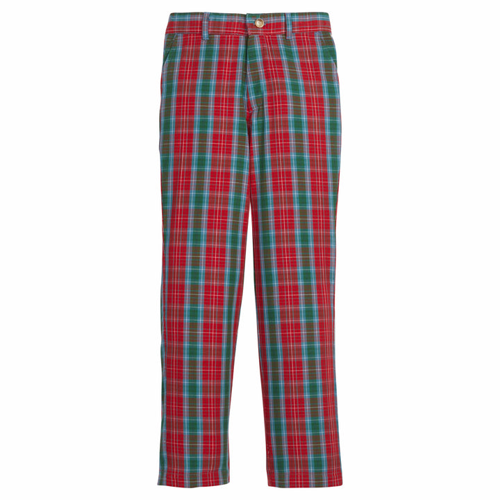 With shades of deep reds and soft gray blues, our Stafford Plaid is one of our most handsome plaids yet. Traditional, elegant, and versatile, this collection can be worn for a variety of fall occasions! Our Classic Pant has a modern cut that your son will love. It features an interior elastic adjuster for the perfect fit, reinforced knees for hours of play, and a hidden hook and loop closure with a zipper for easy dressing! This Stafford Plaid style is a fun take on a classic silhouette and matches perfectly with our new Stafford Bow Tie! Complete the look with our Button Down Shirt - White Oxford and Classic Wool Blazer - Navy.