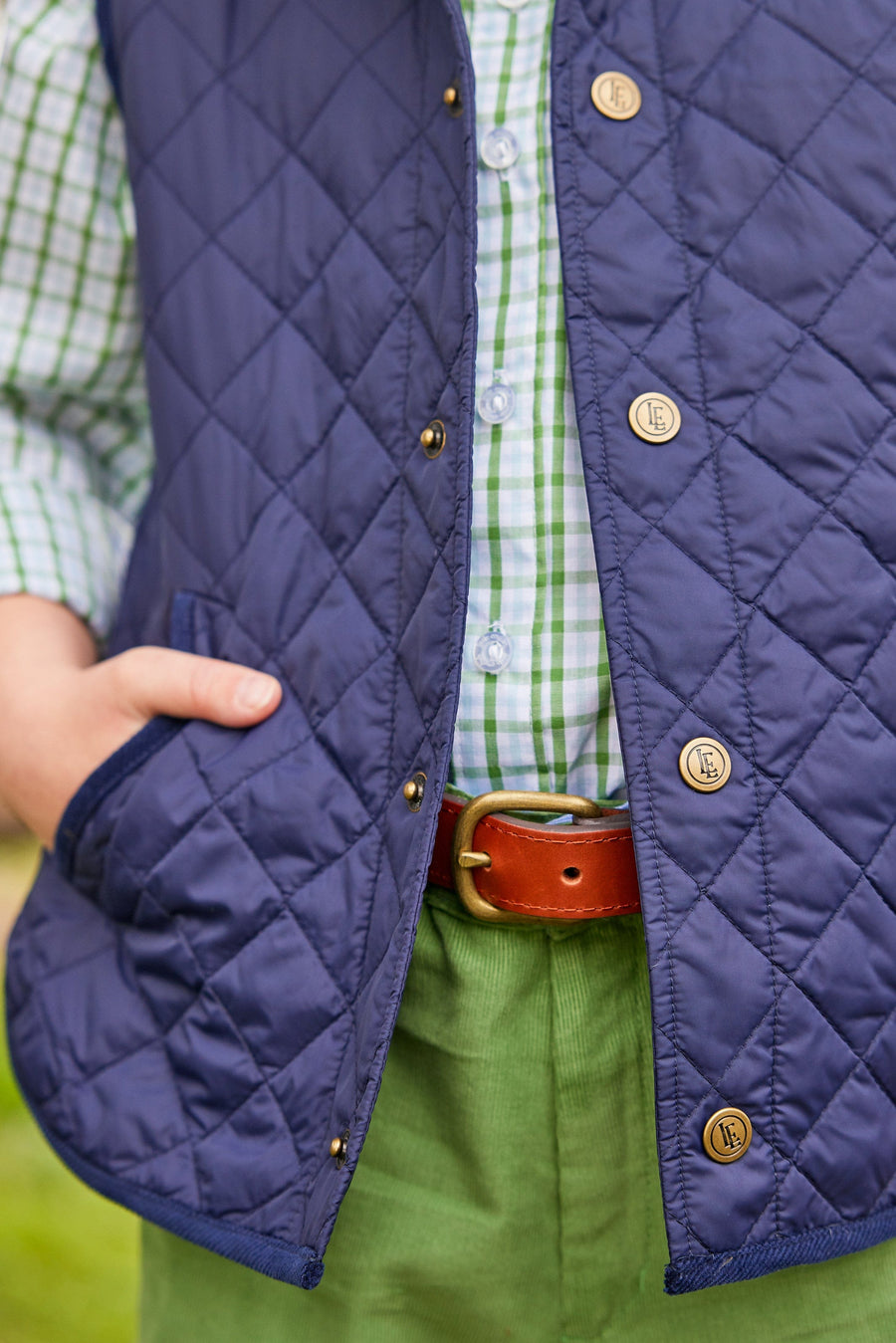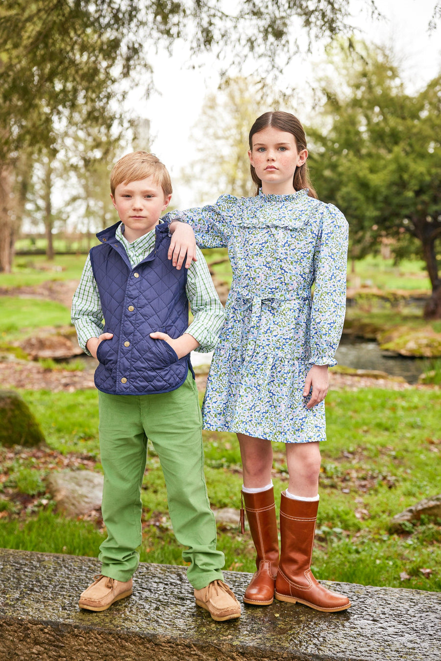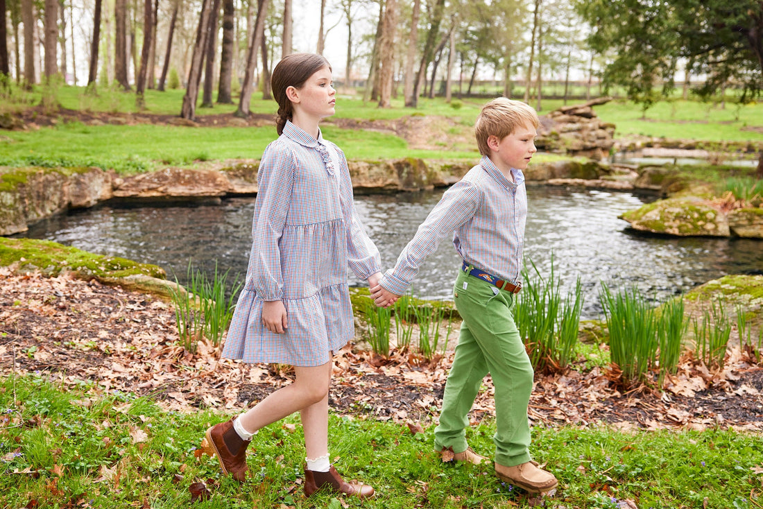 Our Classic Pant has a modern cut that your son will love. It features an interior elastic adjuster for the perfect fit, reinforced knees for hours of play, and a hidden hook and loop closure with a zipper for easy dressing! This Watercress Corduroy style pairs beautifully with our Leland or Teton collections and will take him from school to dinner to play and everywhere in between!