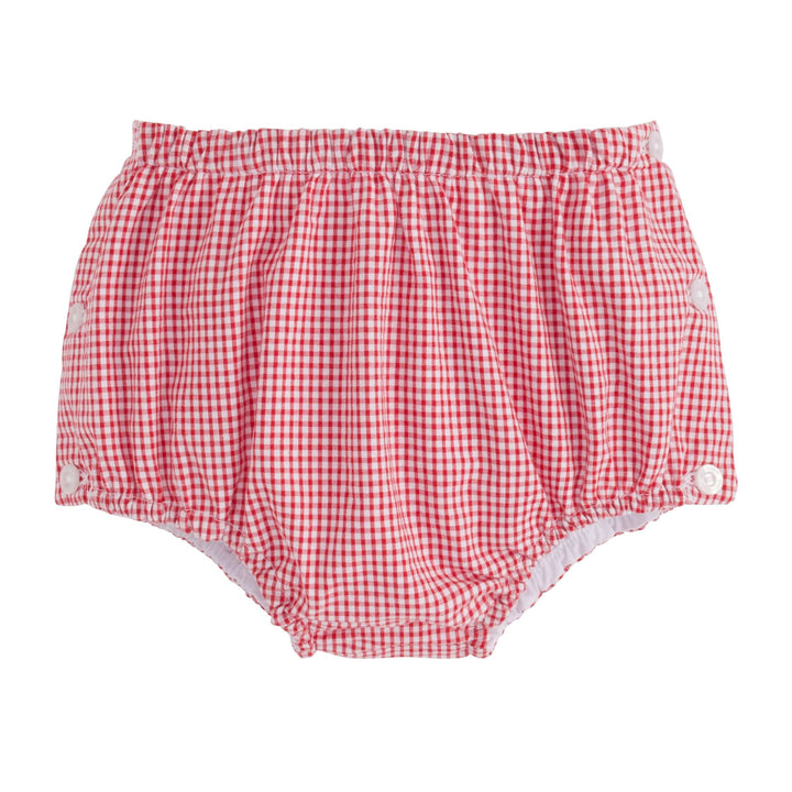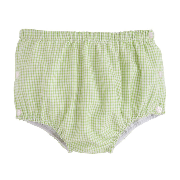 Our classic diaper cover is made with an elastic waistband and leg holes, as well as functioning buttons down each side. The light blue seersucker gingham style will be a wardrobe staple for your little boy. Pair it with our Crochet Onesies and Shirts for a classic look!