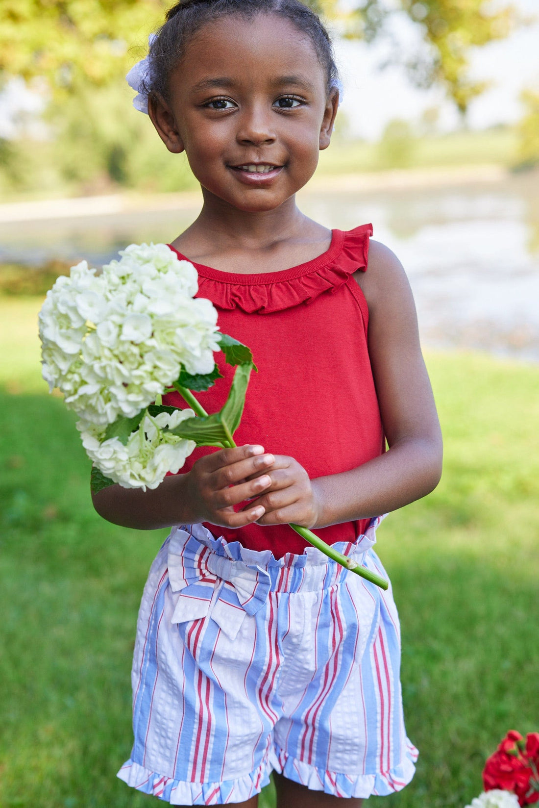 The Ruffled Tank is the perfect basic piece to add to your girl's spring wardrobe. It's made from extra soft cotton and can easily be paired with a variety of our bottoms, so she'll need one in every color. Between our selection of shorts, skorts, skirts, and bloomers, the outfit opportunities are endless!