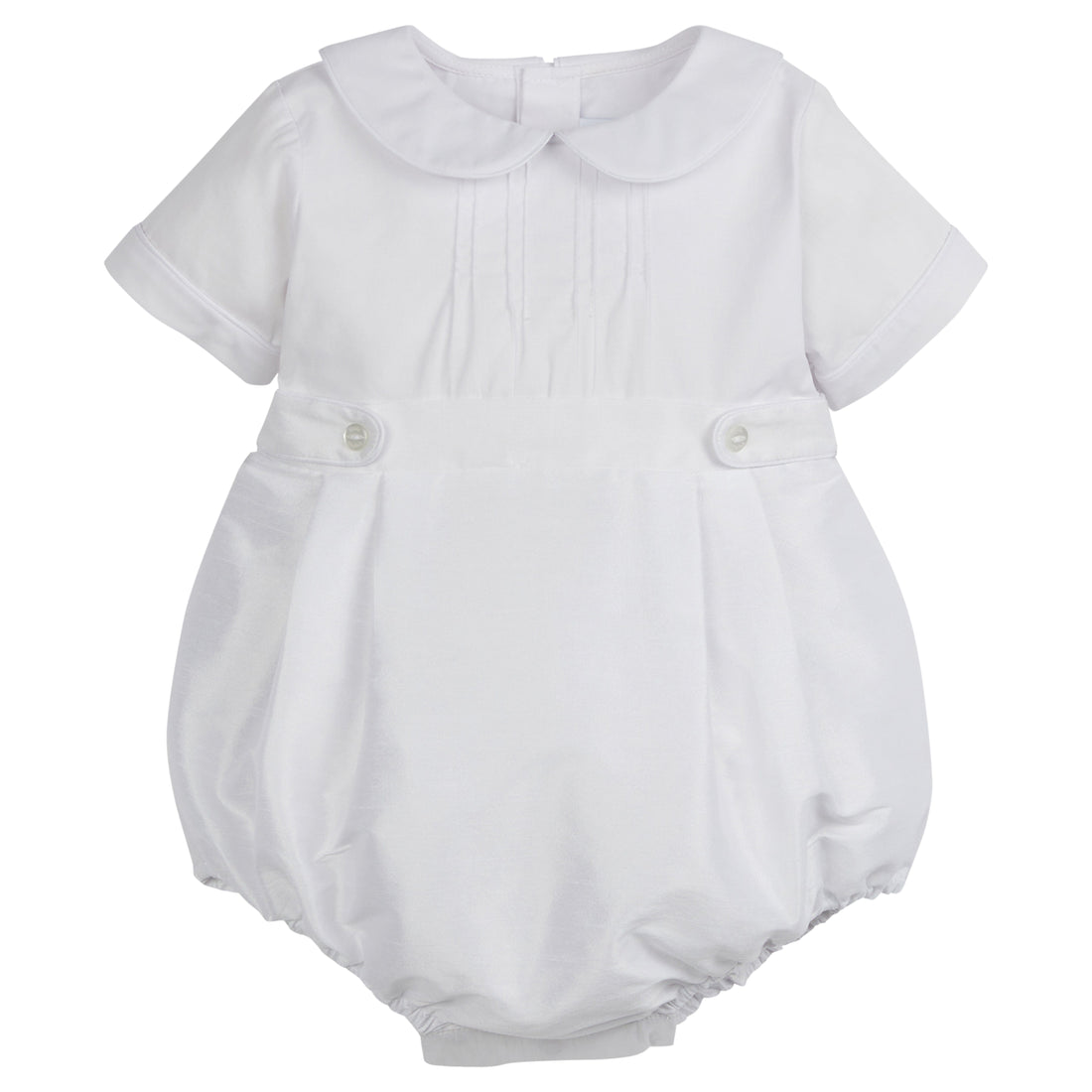 Dress up your little one and celebrate life's special moments in our Classic Wedding Bubble. This traditional one-piece features a peter pan collar with pintucks at the chest, button tabs at the side, and elastic at the leg openings. Big brother can perfectly coordinate in our Classic Wedding Short Set - Special Occasion White.