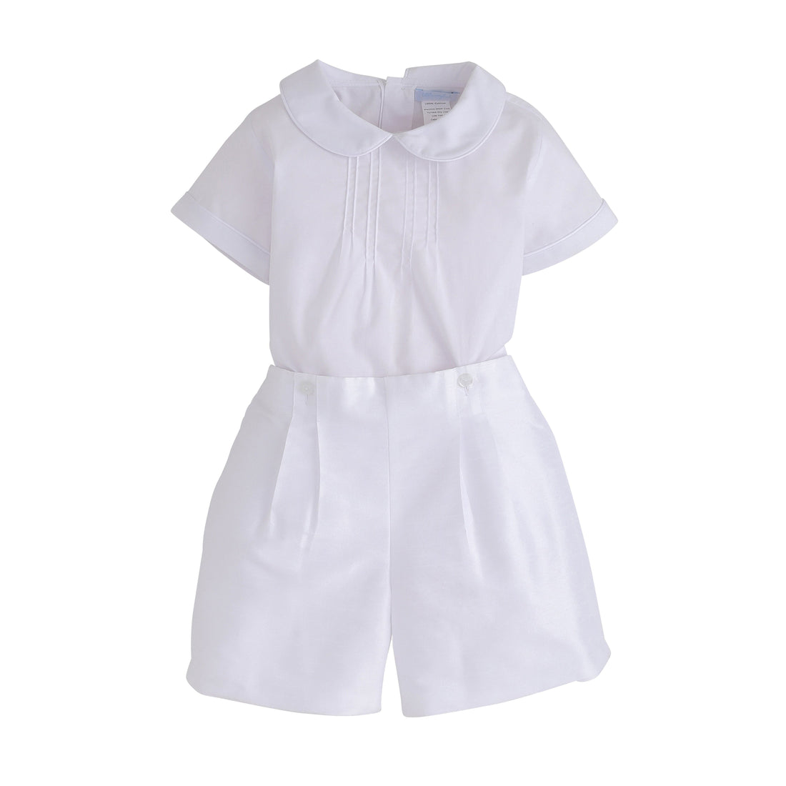Dress up your little one and celebrate life's special moments in our Classic Wedding Short Set. Available in three colors that match back to our bow sashes, these styles are perfectly coordinated for boy and girl. This traditional two-piece outfit features a peter pan collar with pintucks at the chest and elastic on the back on the waistband.