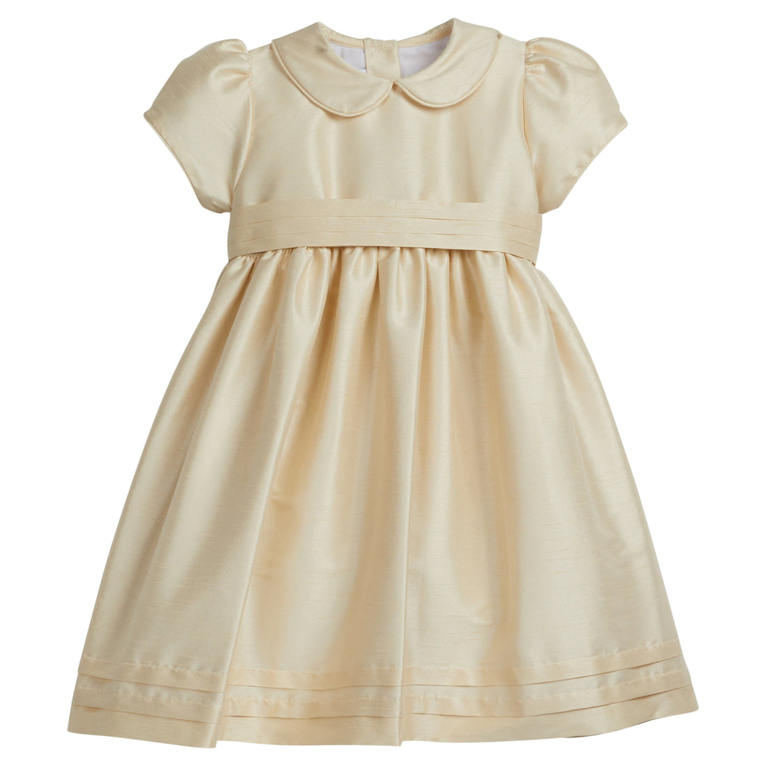 Celebrate life's special occasions with our new Champagne Peter Pan Formal Dress. This style features a classic peter pan collar with simple cap sleeves and gathers at the waist. Horizontal pleats around the hem elevate this dress and the button-on bow sash makes it the perfect pick for your next special event!