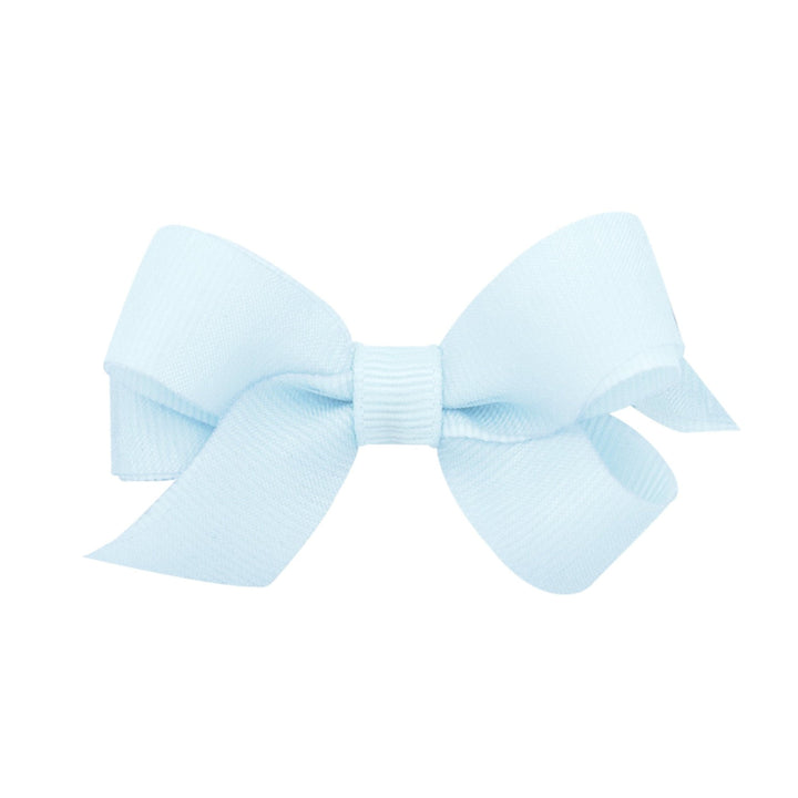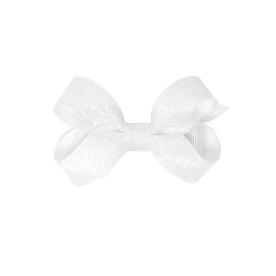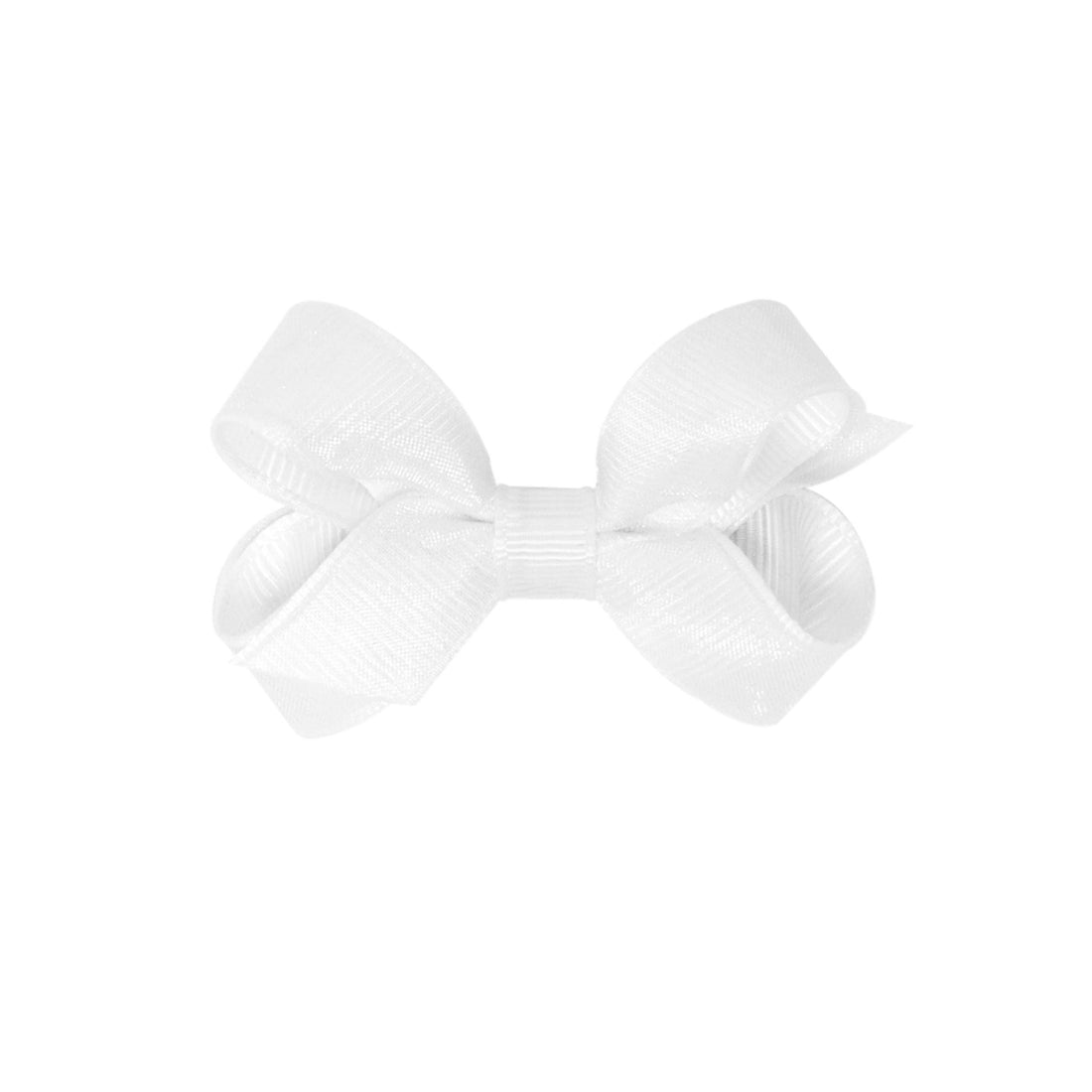 WeeOne's best selling organza hair bow is now in an extra small size! Shimmer organza overlays our classic grosgrain for a com-bow you'll be sure to love. This style is available in white, light pink, and blue vapor.