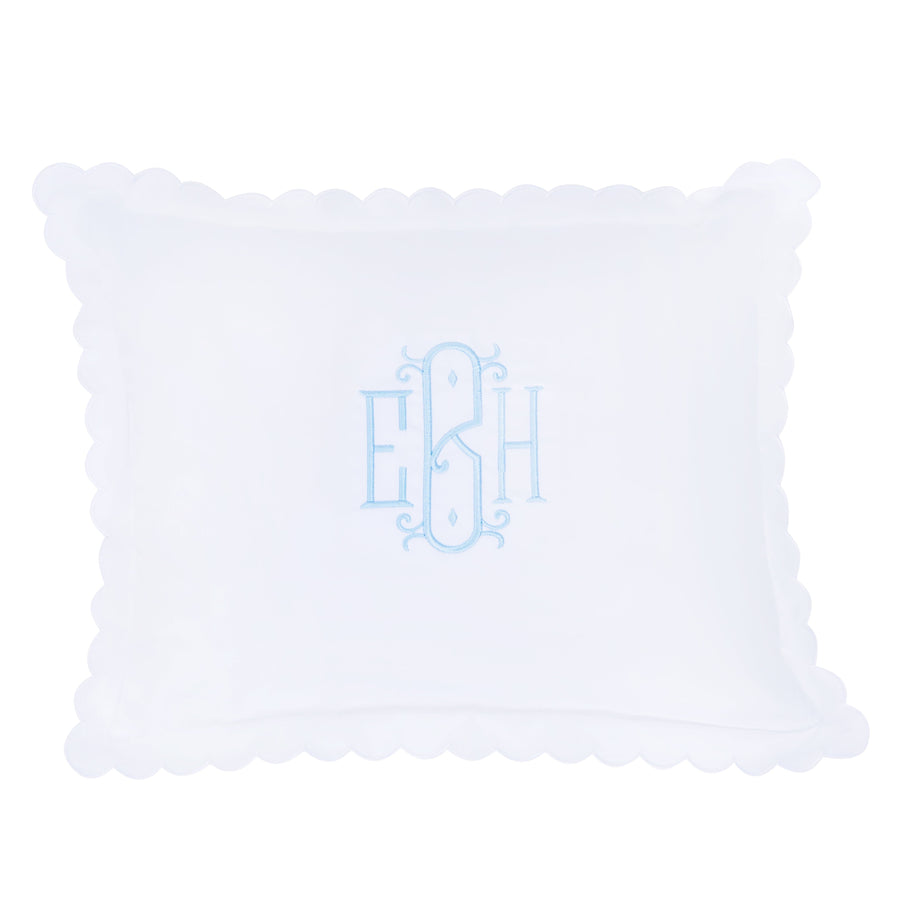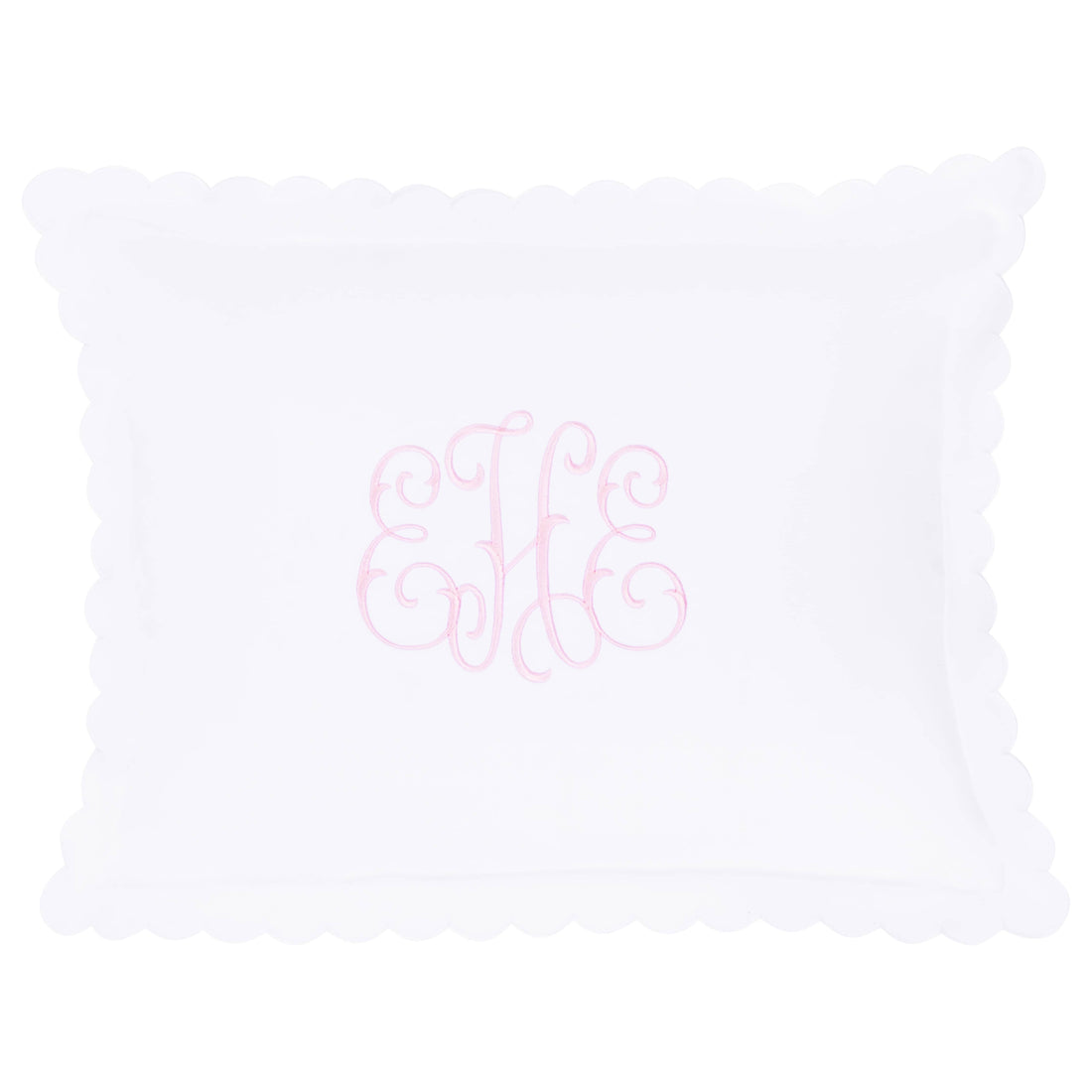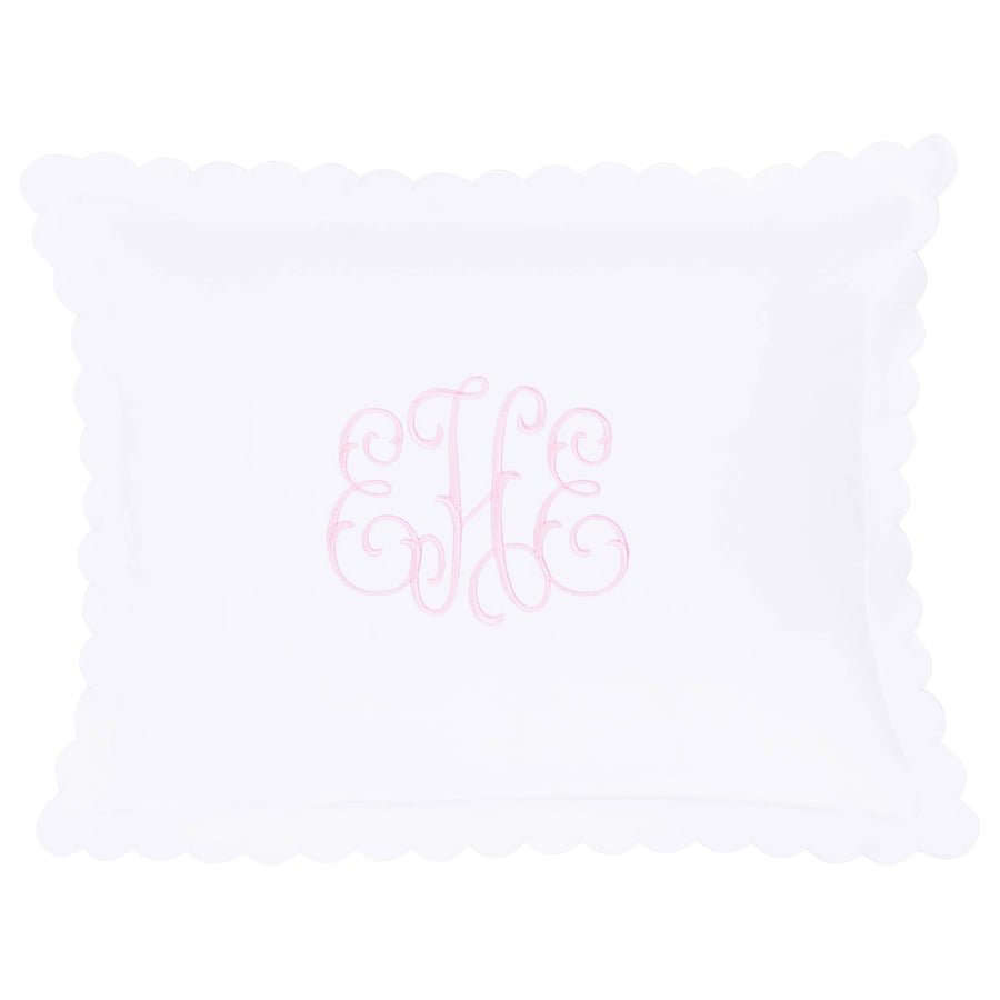 Our Scallop Baby Pillowcases are the perfect compliment to our bedding collection. Featuring a scalloped edge trimmed in white and button closures along the bottom edge to allow for larger monograms and embroidery, this pillowcase makes a great gift on its own, or pair it with any of our Embroidered Crib Skirts and Crib Sheets to create a complete look!