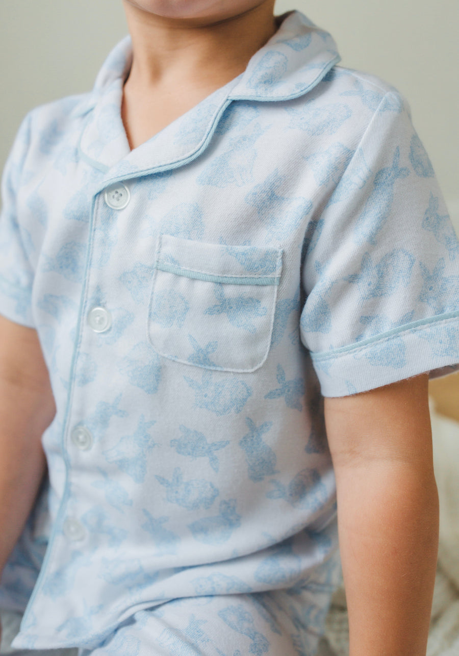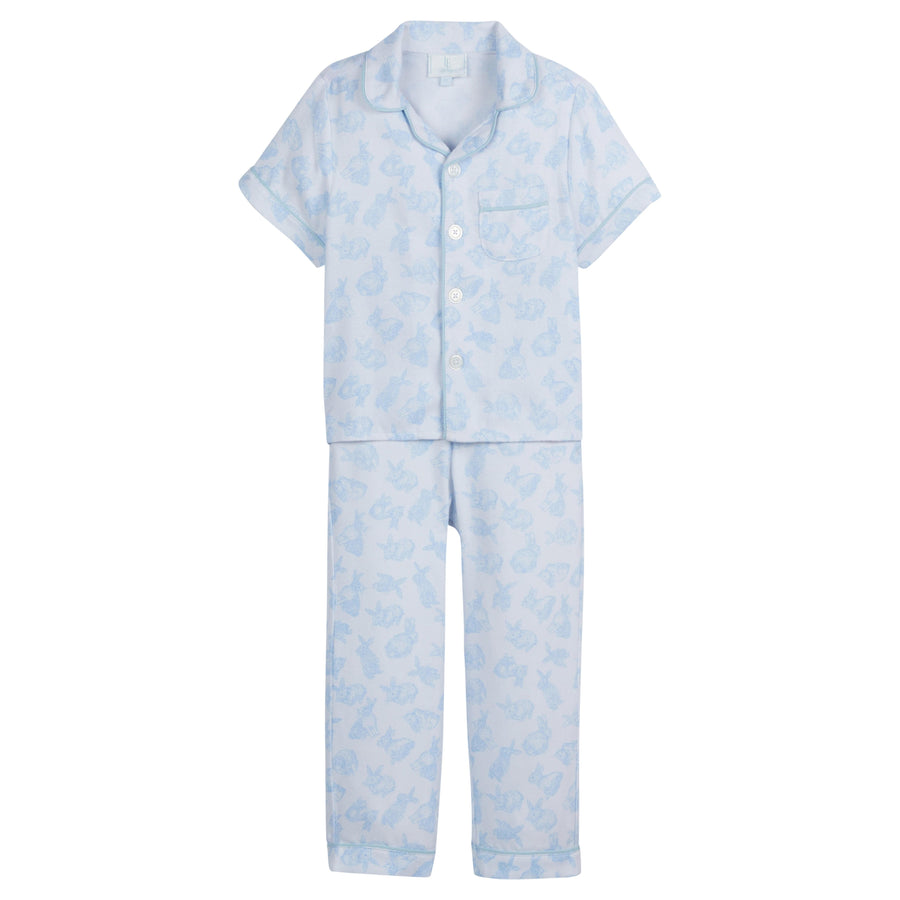 Little English Classic Pajama Sets are back with a soft blue bunny print! With short sleeves, long legs, and a soft, flannel-y feel, these new pajamas are sure to be a favorite this spring season. They run from 18m - 12, making them perfect for sibling matching & sister can coordinate in our Classic Short Sleeve Nightgown - Bunnies.