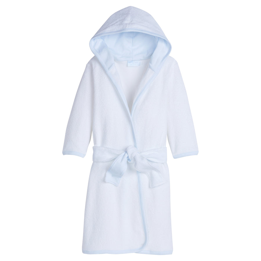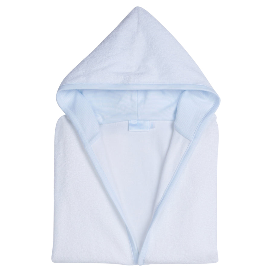Made from 100% terry cloth, our Signature Stripe Robes feature a hood and tie sash lined with our light blue and white Signature Stripe fabric. Both soft and absorbent, this bath robe makes a great addition to your little one's bath time routine. Or bundle with pieces like our Printed Footie and Blanket in Light Blue Signature Stripe for the perfect gift set for mom and baby.
