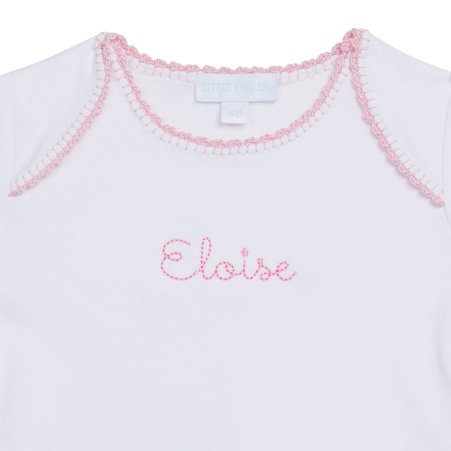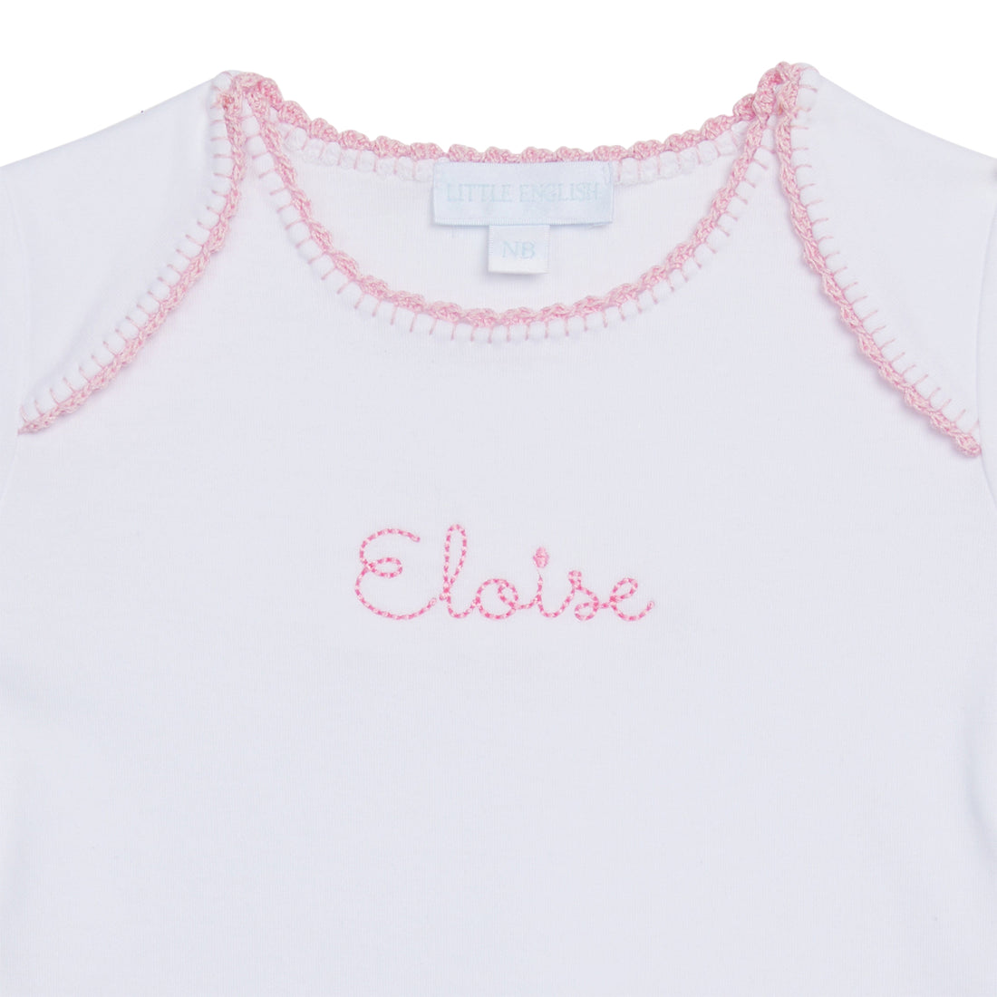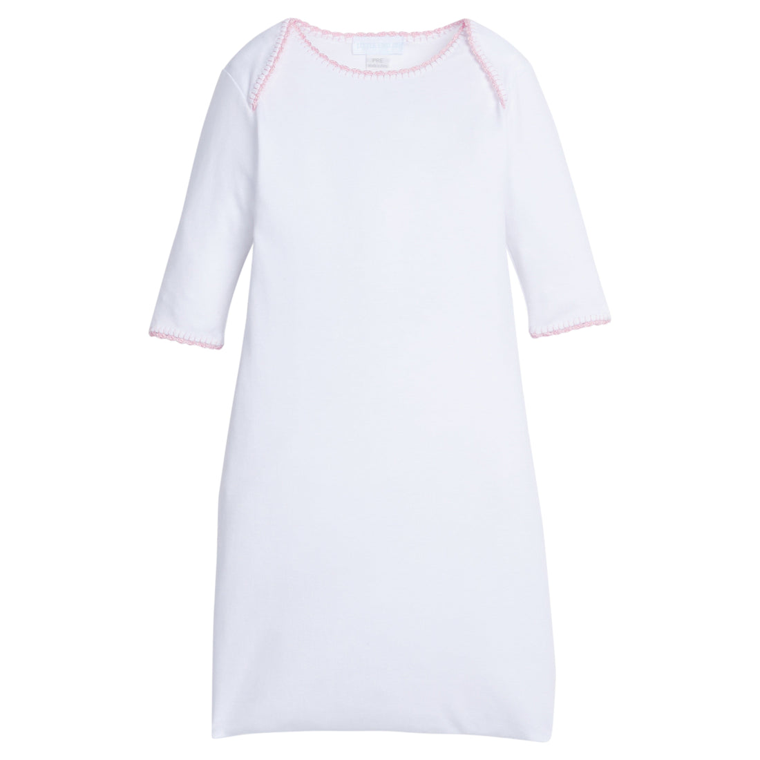 Dress your littlest one in our crochet newborn gowns! Made from 100% pima cotton, this oh so soft baby gown features long sleeves and beautiful light pink crochet detailing at the neckline and cuff. Available in three colors, our Crochet Gowns are perfect for monogramming and make the best gifts for mom and baby!