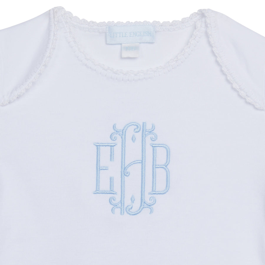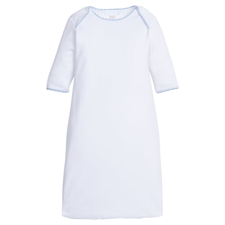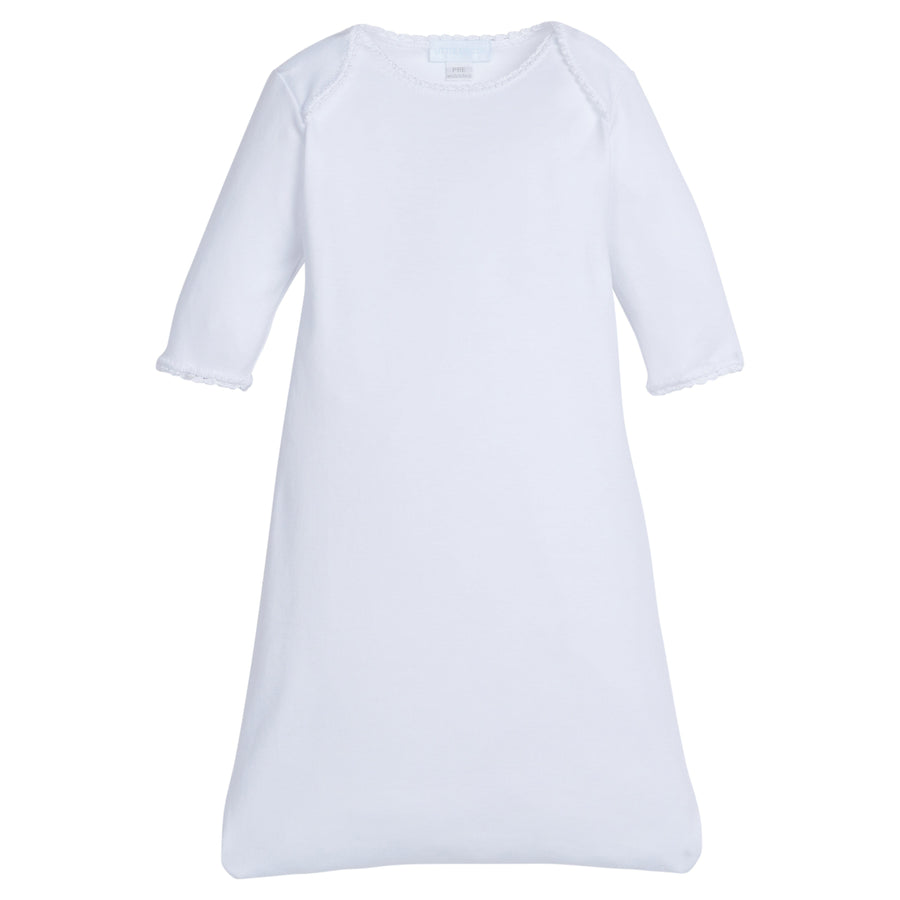 Dress your littlest one in our crochet newborn gowns! Made from 100% pima cotton, this oh so soft baby gown features long sleeves and beautiful white crochet detailing at the neckline and cuff. Available in three colors, our Crochet Gowns are perfect for monogramming and make the best gifts for mom and baby!