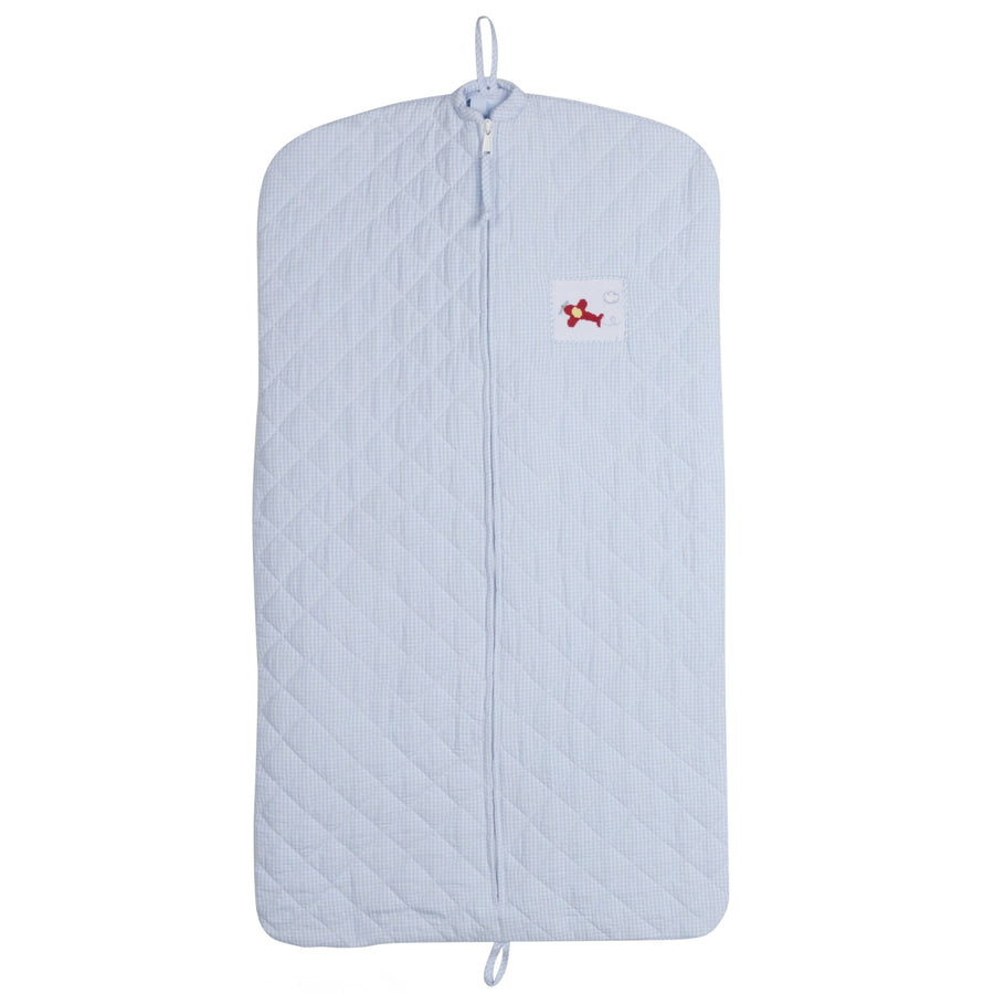 Unser komplettes Gepäckset umfasst unsere Kleiderhülle, Reisetasche, Einkaufstasche und Kosmetik! Ob Sie eine Nacht in der Stadt verbringen oder für einen Wochenendausflug packen, lassen Sie sie mit Stil reisen. Unser gesmoktes Flugzeug ist aus hellblauem Seersucker und perfekt für Jungs, die viel unterwegs sind. Dieser Stil hat ein 1,5 Zoll großes Rautensteppmuster.