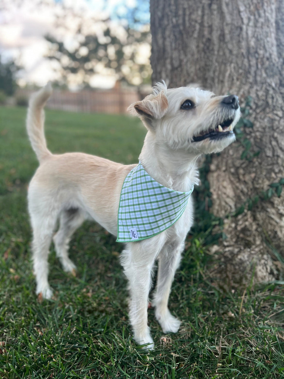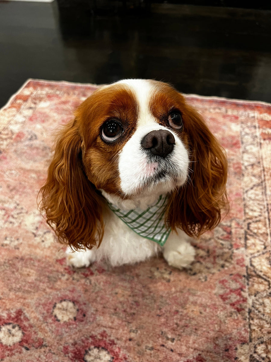 We are so excited to introduce our very own Dog Bandanas! Tie this beautiful Leland Plaid bandana around your furry friend so the whole family can coordinate! Dog bandanas come in three sizes: Small, Medium, and Large.