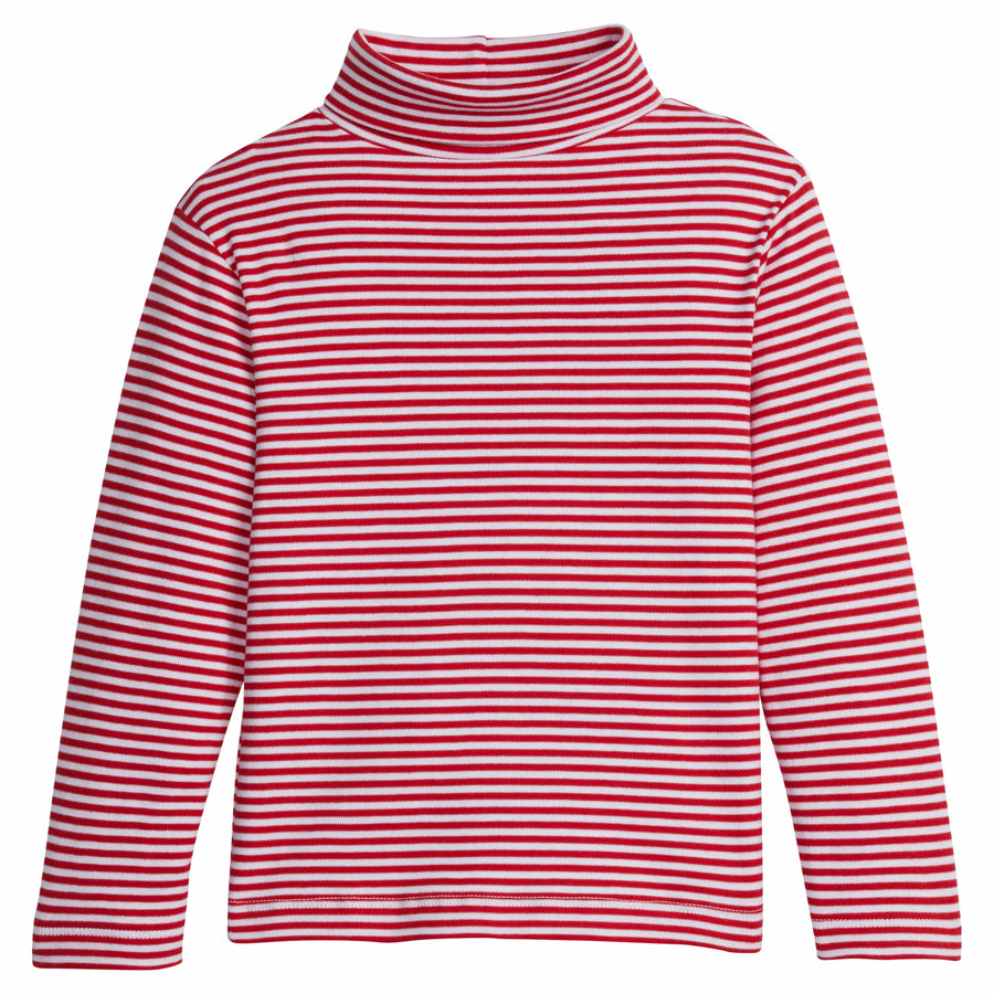 little english classic children's clothing red stripe turtleneck, soft cotton long sleeve top for fall