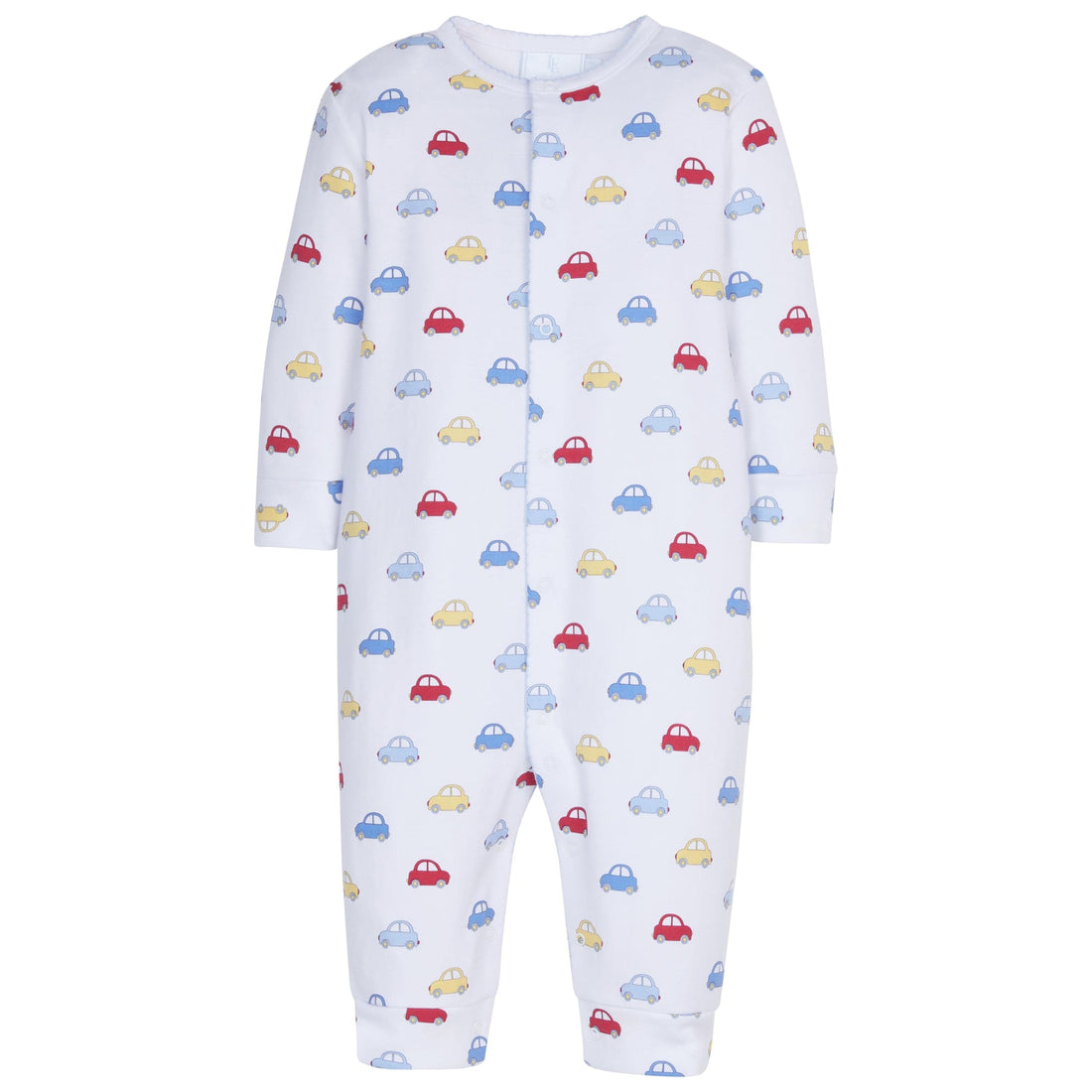 Vroom vroom! This 100% pima cotton printed romper is trimmed in light blue picot and features a multicolored, classic car print. Our Printed Rompers make great gifts for babies, especially when paired with our coordinating printed blanket and embroidered bib.